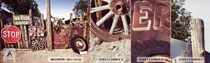Photo Wallpaper Sample Premium Canvas - And the Time Stopped - Road sign, Route 66, USA - 100x30 cm