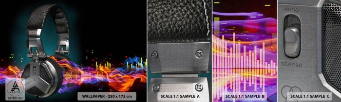 Photo Wallpaper Sample Premium Canvas - In the Fire of Music - Abstraction, Music, Headphones - 100x30 cm
