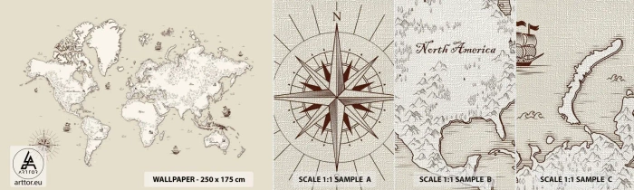 Photo Wallpaper Sample Premium Canvas - Travel Round the World - World map, Continents, Pirate ship - 100x30 cm