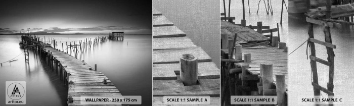 Photo Wallpaper Sample Premium Canvas - Peace of a Forgotten Shore - Landscape, Lake, Wooden Bridge - 100x30 cm