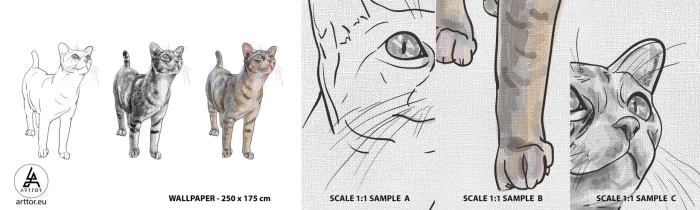 Photo Wallpaper Sample Premium Canvas - Drawing Lesson - Animals, Cat, For children - 100x30 cm