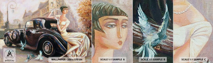 Photo Wallpaper Sample Premium Canvas - Elegance - Retro Style - Retro car, Woman, Palace - 100x30 cm