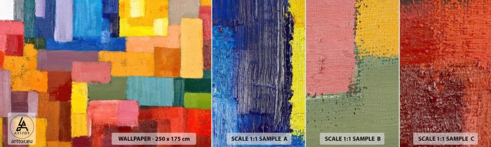 Photo Wallpaper Sample Premium Canvas - Each Different, All Colourful - Abstraction, Piece, Modern Pattern - 100x30 cm