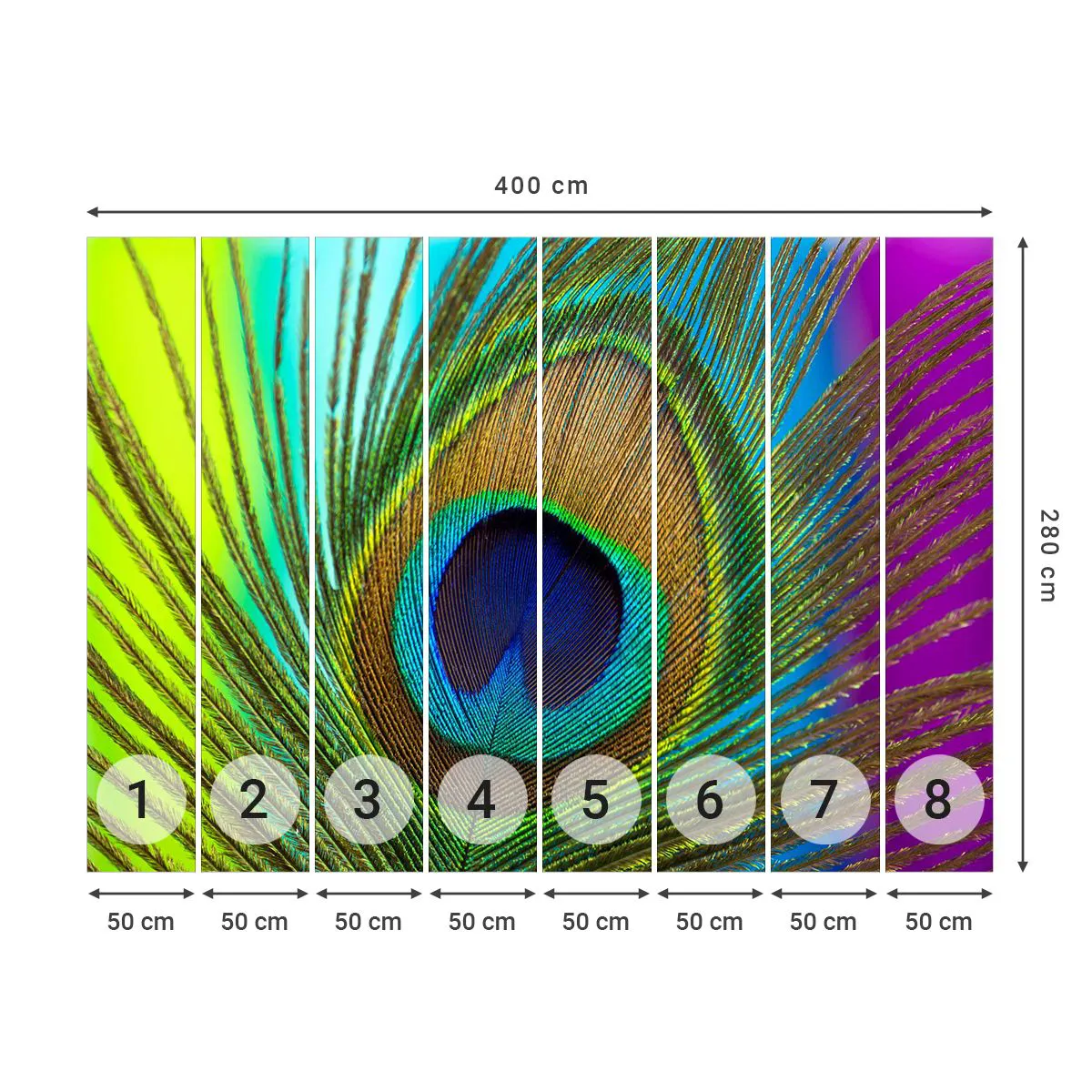 Photo Wallpaper Standard Eco - Eye to Eye - Abstraction, Peacock Feather, Piece - 400x280 cm