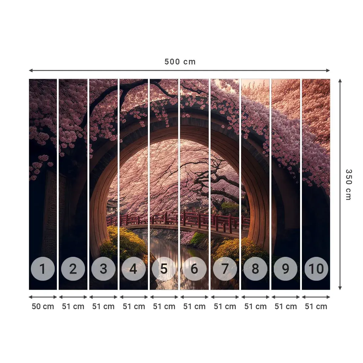 Self-Adhesive Photo Wallpaper Deluxe Sticker - Japanese Spring - Bridge, Japan, Japanese cherry - 500x350 cm