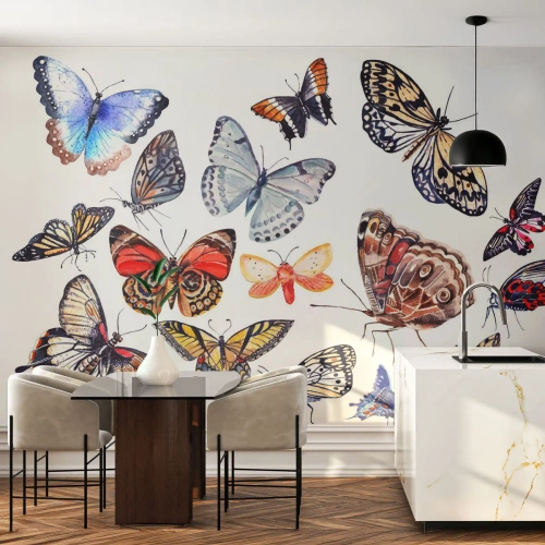 Photo Wallpaper Premium Sand - Colourful Swarm - For children, Colorful Butterflies, Graphics - 350x256 cm