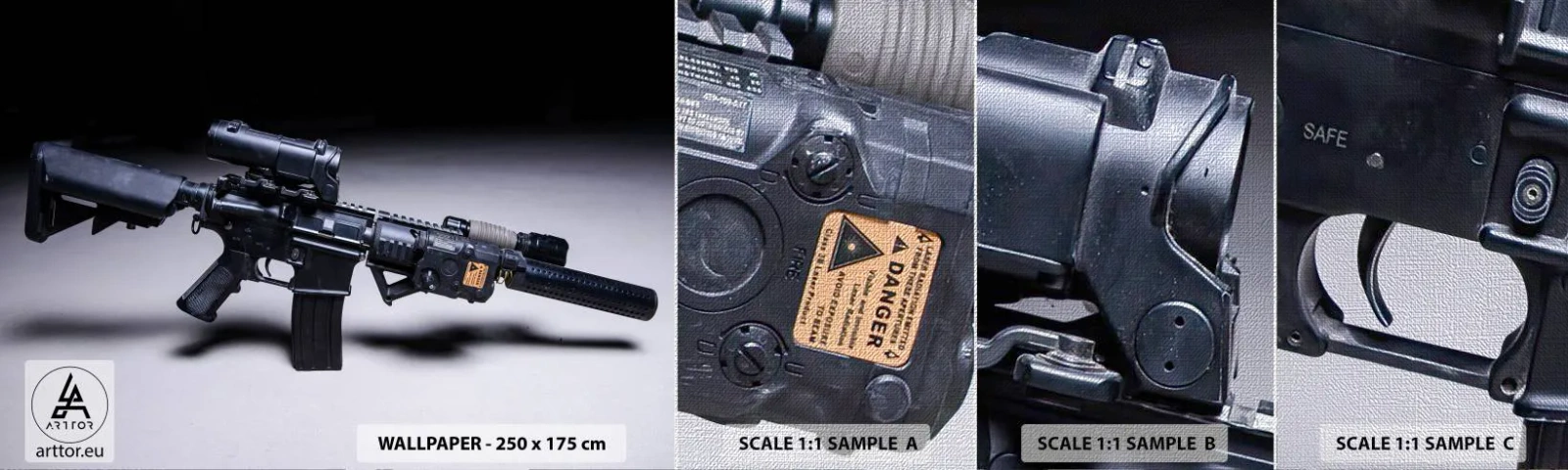 Photo Wallpaper Sample Premium Canvas - Dark Knight - Military, Rifle, Weapon - 100x30 cm