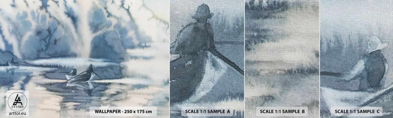 Photo Wallpaper Sample Premium Canvas - Fishermen in Their Paradise - Abstraction, Lake, Fishing - 100x30 cm