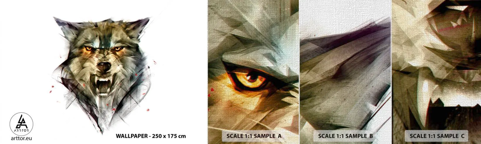 Photo Wallpaper Sample Premium Canvas - Stand Back! - Abstraction, Animals, Wolf - 100x30 cm