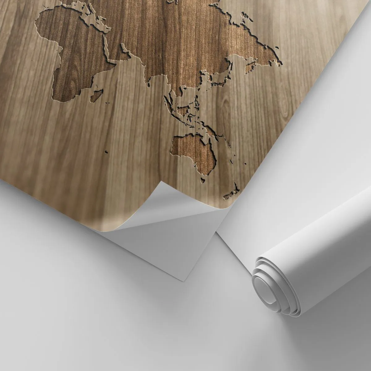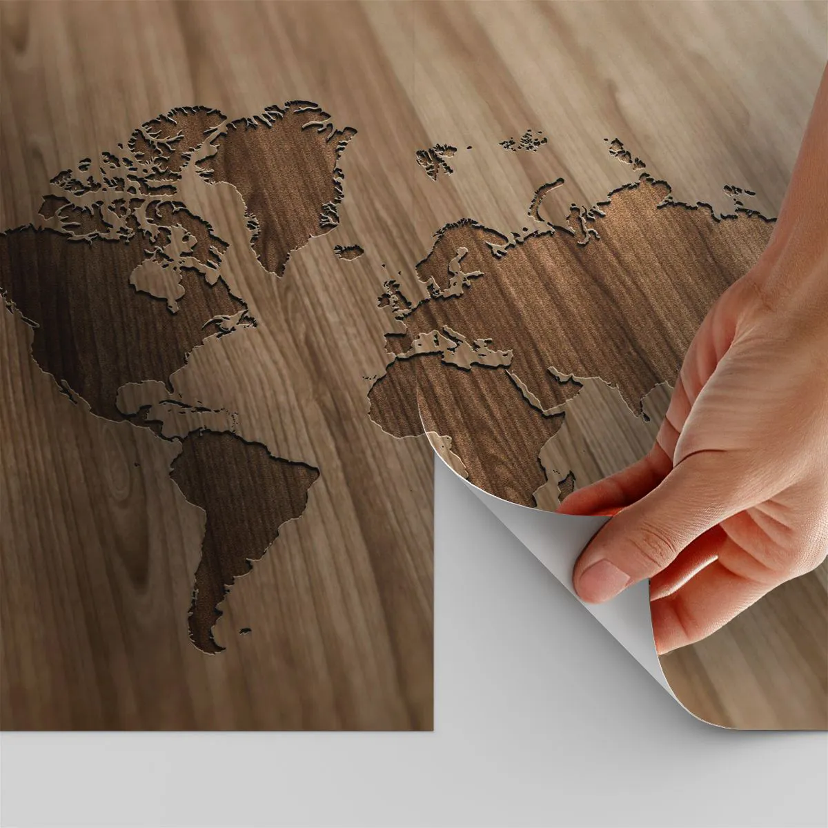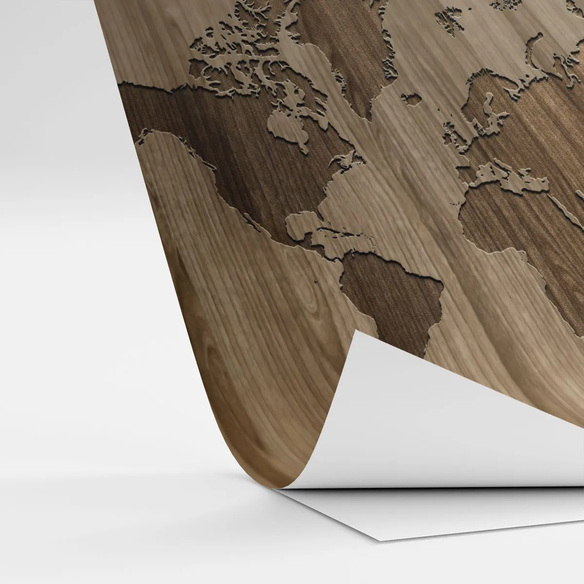 Self-Adhesive Photo Wallpaper Deluxe Sticker - World on a Table - World map, Wood, Continents - 500x350 cm