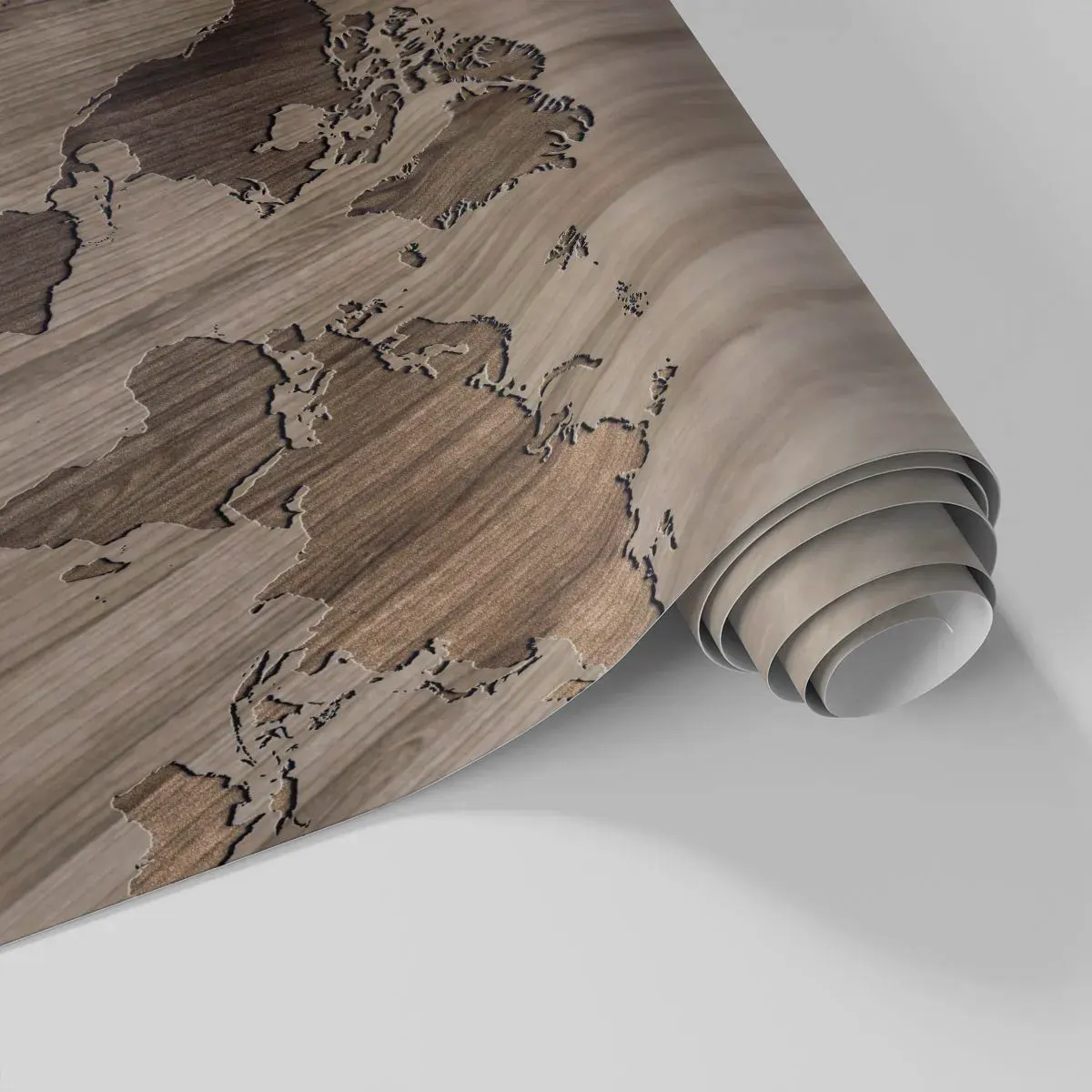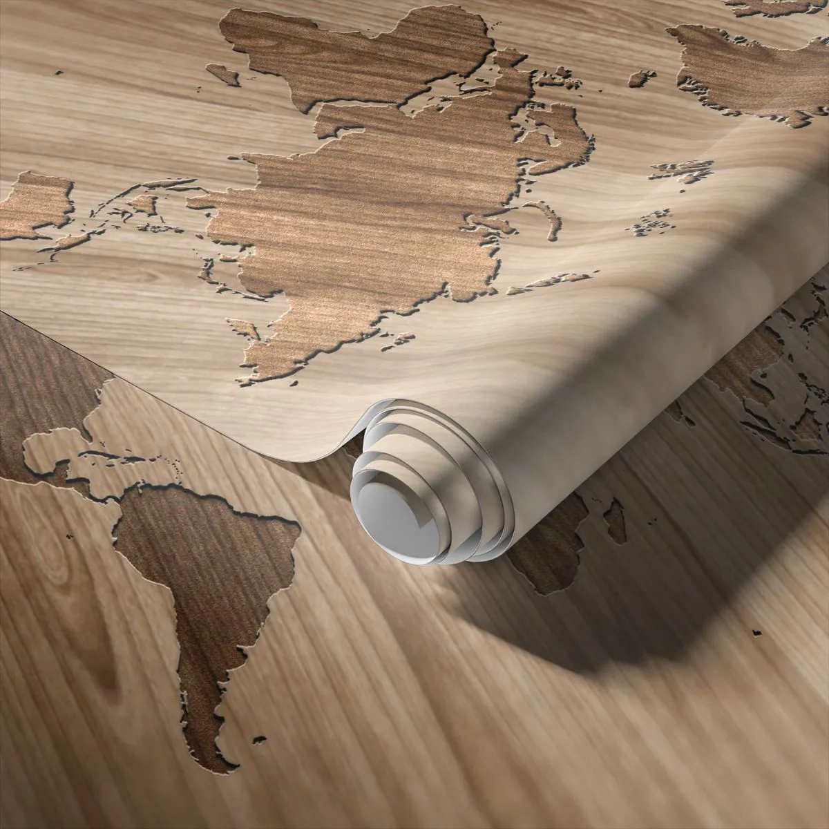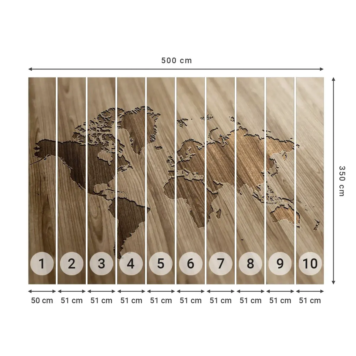 Self-Adhesive Photo Wallpaper Deluxe Sticker - World on a Table - World map, Wood, Continents - 500x350 cm