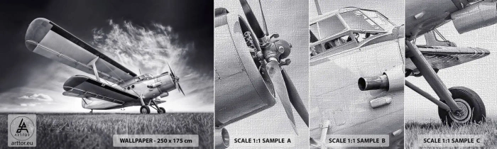 Photo Wallpaper Sample Premium Canvas - Winged Pilgrim - Plane, Aircraft, Black and white - 100x30 cm