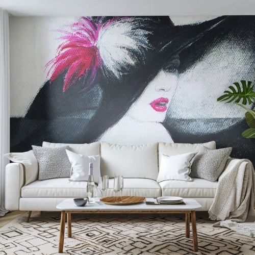 Self-Adhesive Photo Wallpaper Deluxe Sticker - Always a Secret - Woman In A Hat, Woman's Face, Red lips - 500x350 cm