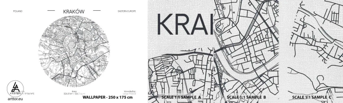 Photo Wallpaper Sample Premium Canvas - Anatomy of Crocow - Map, Cracow, Poland - 100x30 cm