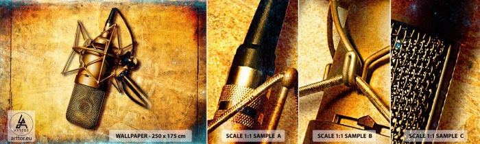 Photo Wallpaper Sample Self-Adhesive Deluxe Sticker - Golden Years of the Radio - Microphone, Music, Retro - 100x30 cm