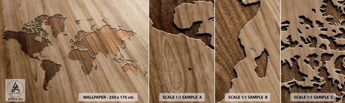Photo Wallpaper Sample Self-Adhesive Deluxe Sticker - World on a Table - World map, Wood, Continents - 100x30 cm