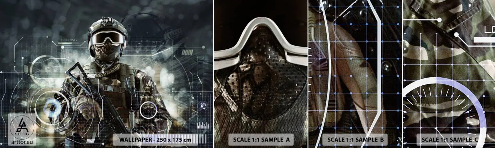 Photo Wallpaper Sample Self-Adhesive Deluxe Sticker - Power Squared - Abstraction, Soldier, Commando - 100x30 cm