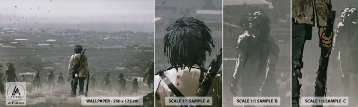 Photo Wallpaper Sample Self-Adhesive Deluxe Sticker - Last Man Standing - Abstraction, Fantasy, Army - 100x30 cm