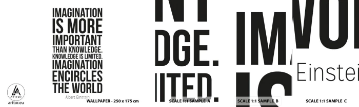 Photo Wallpaper Sample Self-Adhesive Deluxe Sticker - Einstein about Power of Imagination - Typography, Affirmation, Maxim - 100x30 cm