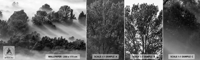 Photo Wallpaper Sample Self-Adhesive Deluxe Sticker - Rising from a Sleep - Landscape, Forest, Fog - 100x30 cm