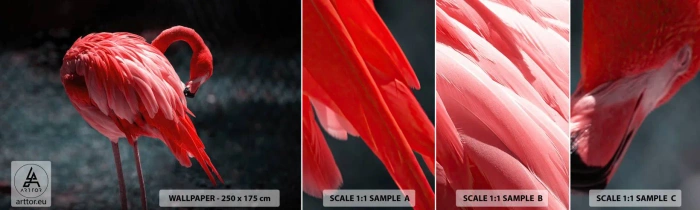 Photo Wallpaper Sample Self-Adhesive Deluxe Sticker - Crimson Poem of Nature - Flamingo, Bird, Nature - 100x30 cm