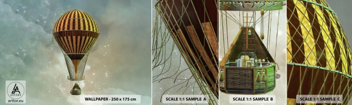 Photo Wallpaper Sample Self-Adhesive Deluxe Sticker - Pioneer Flight - Balloon, Fly, Clouds - 100x30 cm