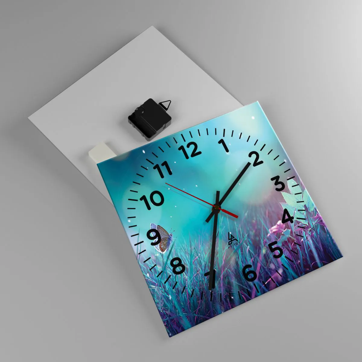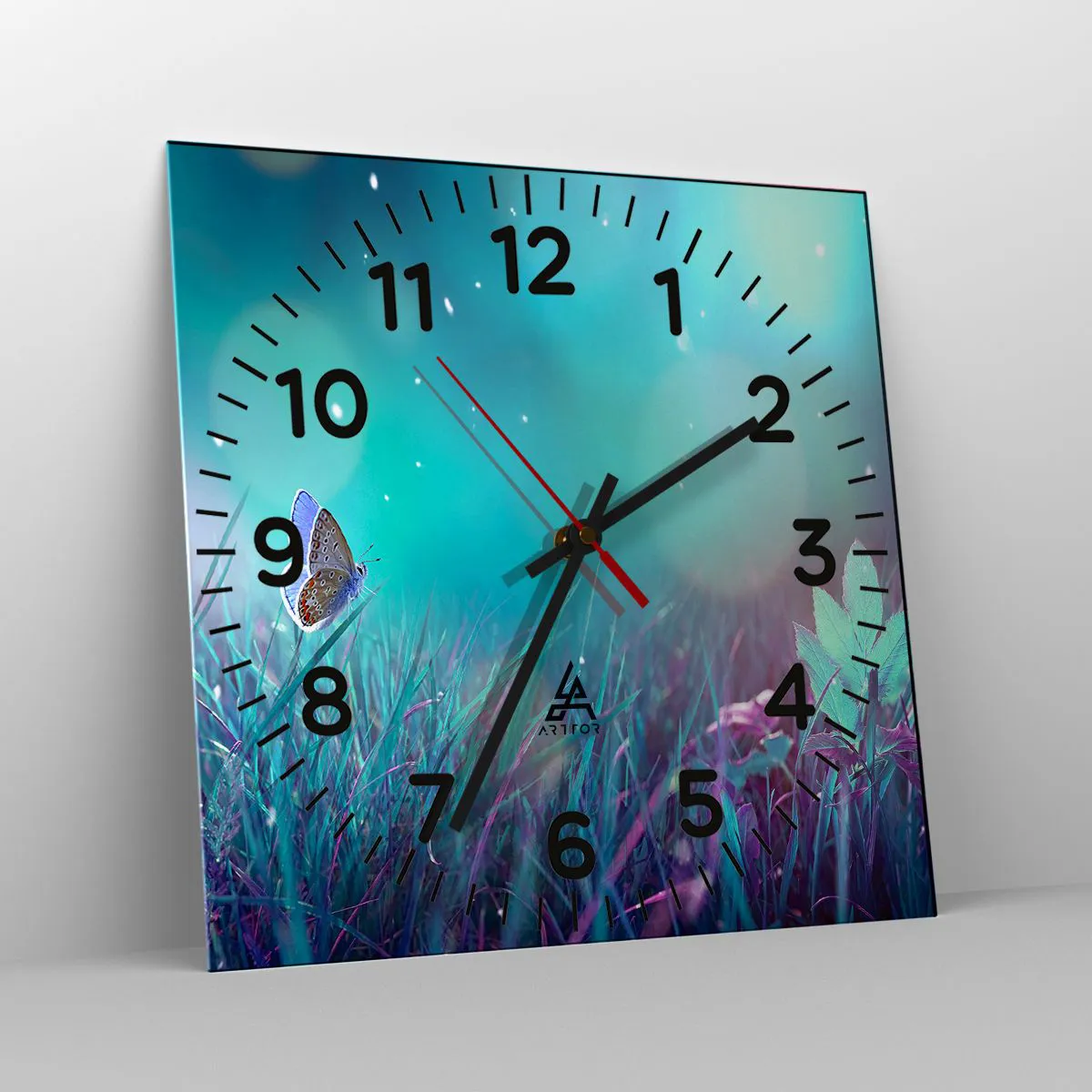 Wall clock - Clock on glass - Secret Life of a Meadow - 30x30 cm
