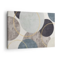 Canvas picture - Geometric circles in shades of gray, blue, and gold - 70x50cm - Wheel after Wheel - Modern wall decoration for the living room and bedroom ARTTOR