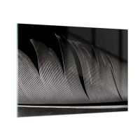 Glass picture - A black and white close-up of a feather shown against a contrasting light. - 70x50cm - Feather - Wonderful Constract - Modern wall decoration for the living room and bedroom ARTTOR