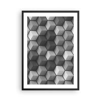 Poster in black frame - Black and white composition of 3D geometric cubes - 50x70cm - Cubist Jigsaw - Modern wall decoration for the living room and bedroom ARTTOR