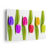 Canvas picture - Multicolored tulips arranged in a row on a white background - 70x50cm - Rainbow Composition - Modern wall decoration for the living room and bedroom ARTTOR
