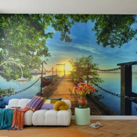 Self-Adhesive Photo Wallpaper Deluxe Sticker - Sunset by the Water - Landscape, Lake, Sailboat - 350x256 cm