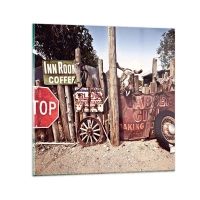 Wall clock - Clock on glass - Rustic decorations with wooden wheels and a bull skull - 30x30cm - And the Time Stopped - Modern wall decoration for the living room, kitchen, and bedroom ARTTOR