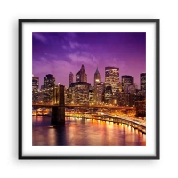 Poster in black frame - Violet and Gold Manhattan - 50x50 cm
