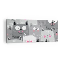 Canvas picture - A fun pattern with cats in shades of gray - 70x50cm - Cat's World - Modern wall decoration for the living room and bedroom ARTTOR