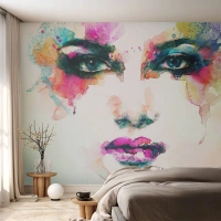 Photo Wallpaper Standard Eco - Colorful portrait of a woman in watercolor style - 100x70cm - Portrait Painted by a Rainbow - Modern wall decoration for the living room and bedroom ARTTOR