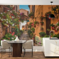 Self-Adhesive Photo Wallpaper Deluxe Sticker - Italian Back Street - City, Flowers, Architecture - 400x280 cm