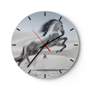 Wall clock - Clock on glass - A jumping Arabian horse against a desert background - 30x30cm - Arabic Prince - Modern wall decoration for the living room, kitchen, and bedroom ARTTOR