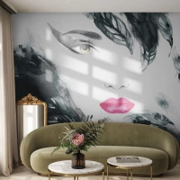Photo Wallpaper Standard Eco - Watch out for Femme Fatale! - Abstraction, Woman's Face, Portrait of a Woman - 450x315 cm