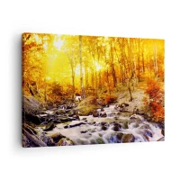 Canvas picture - Autumn forest with a stream among golden leaves - 70x50cm - Stones Set in Gold and Platinum - Modern wall decoration for the living room and bedroom ARTTOR