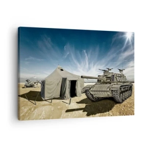 Canvas picture - A tank next to a military tent in a desert area - 70x50cm - Military Dream - Modern wall decoration for the living room and bedroom ARTTOR