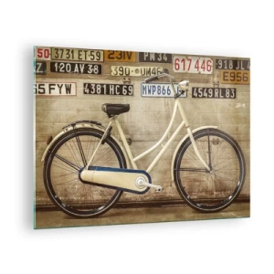 Glass picture - An old bicycle against a wall with license plates - 70x50cm - Without Complexes - Modern wall decoration for the living room and bedroom ARTTOR