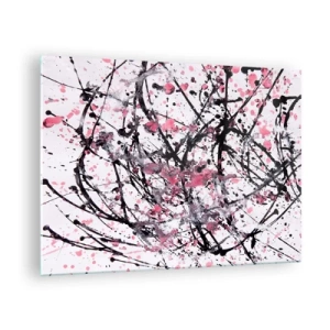 Glass picture - Dynamic abstract lines and pink spots on a white background - 70x50cm - Fleeting Nature of Life - Modern wall decoration for the living room and bedroom ARTTOR