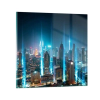 Wall clock - Clock on glass - Night city with illuminated skyscrapers - 30x30cm - Berlin Lights - Modern wall decoration for the living room, kitchen, and bedroom ARTTOR