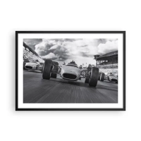 Glass picture - Classic car race on a track in black and white - 70x50cm - There is Power! - Modern wall decoration for the living room and bedroom ARTTOR