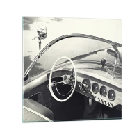 Wall clock - Clock on glass - Interior of a classic car with steering wheel and dashboard - 30x30cm - Weather for the Rich - Modern wall decoration for the living room, kitchen, and bedroom ARTTOR