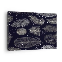 Canvas picture - Delicate white feathers on a navy blue background - 70x50cm - Feathery Lace - Modern wall decoration for the living room and bedroom ARTTOR