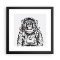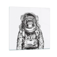 Wall clock - Clock on glass - A black and white sketch of a monkey astronaut. - 30x30cm - Alternative Revolution - Modern wall decoration for the living room, kitchen, and bedroom ARTTOR