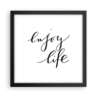 Wall clock - Clock on glass - A white clock with the black inscription Enjoy Life on a minimalist background. - 30x30cm - Nothing to Add… - Modern wall decoration for the living room, kitchen, and bedroom ARTTOR