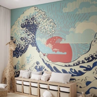 Self-Adhesive Photo Wallpaper Deluxe Sticker - From Japanese Inspirations - Abstraction, Sea wave, Sea - 200x140 cm